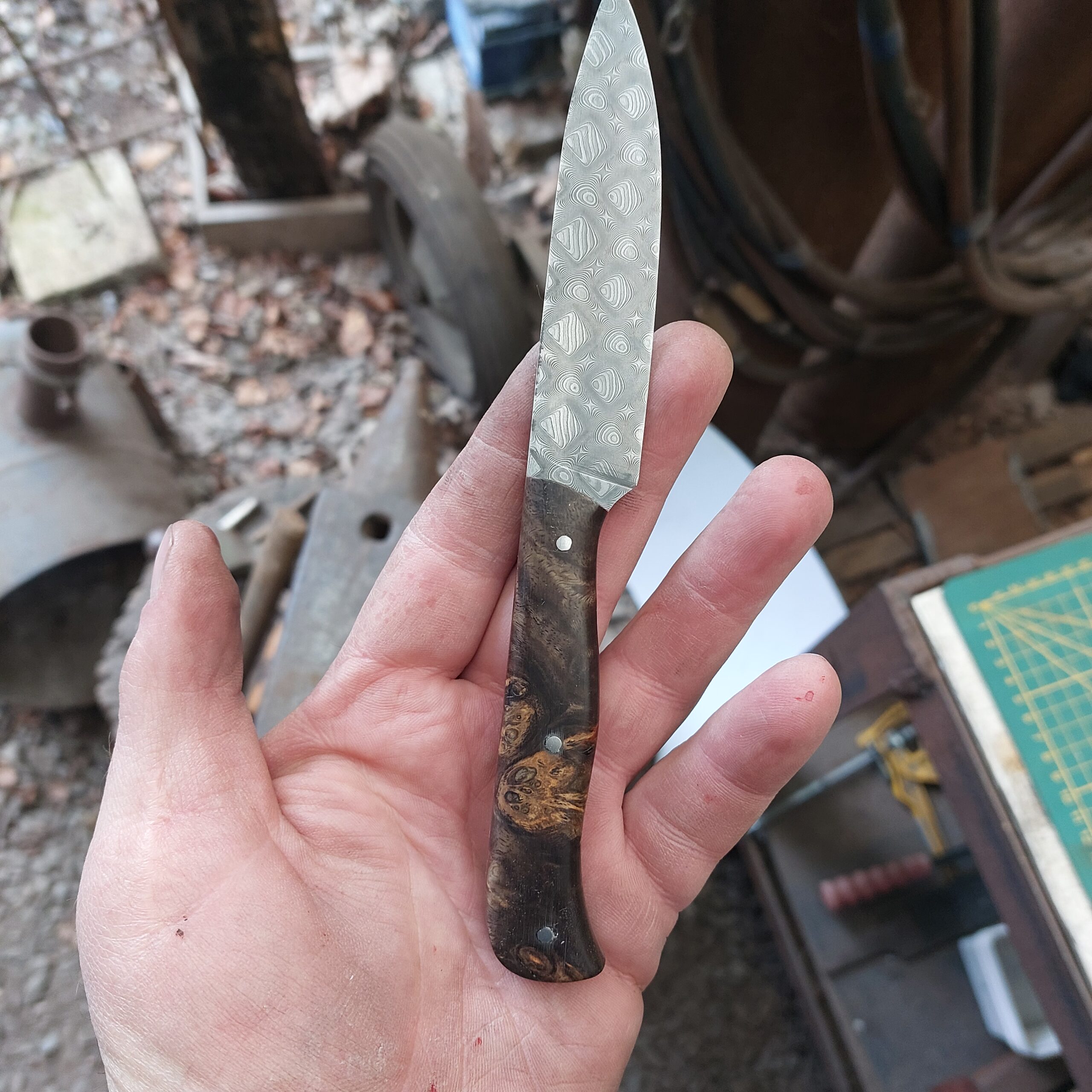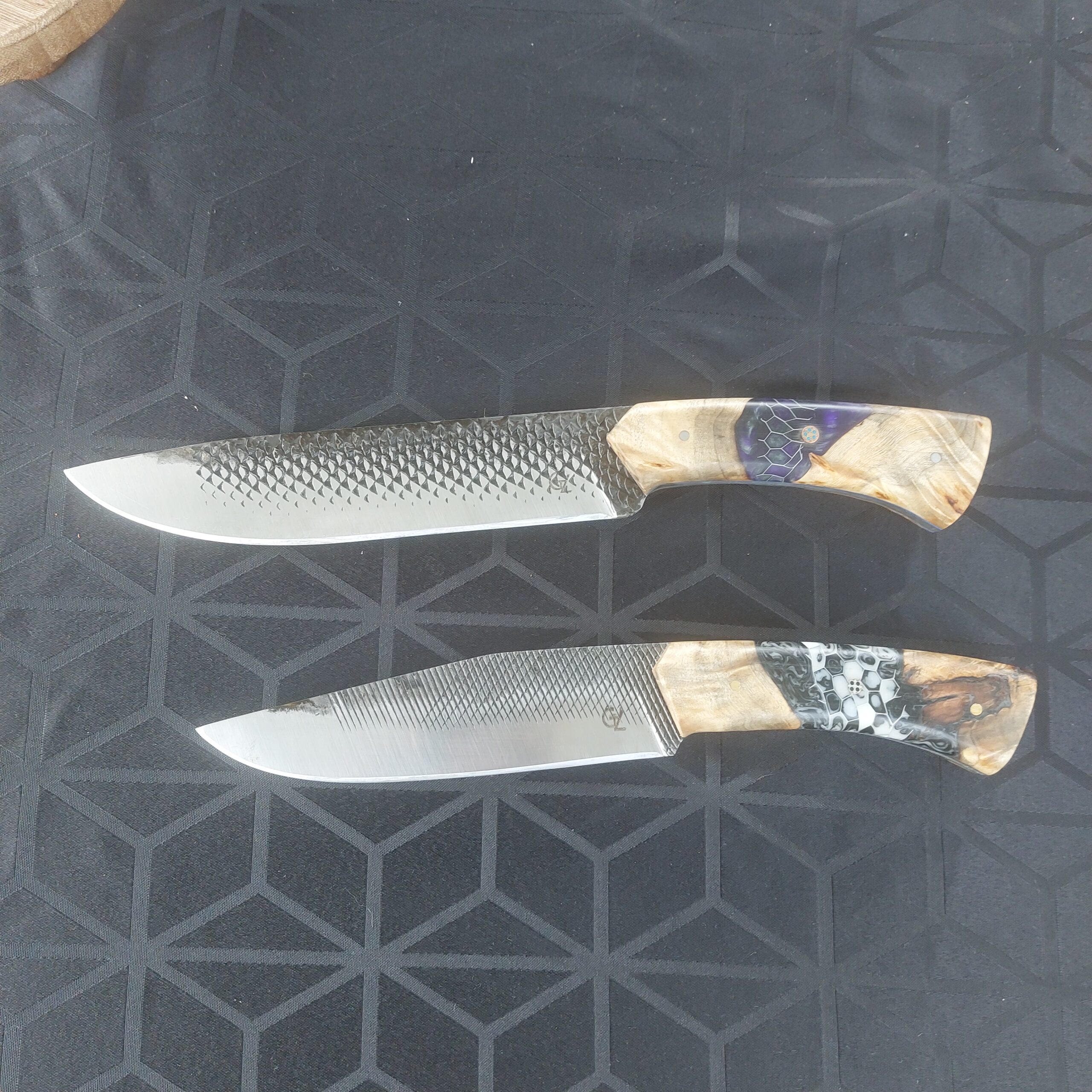 Deux gros couteaux forgés dans des râpes de maréchal ferrant.